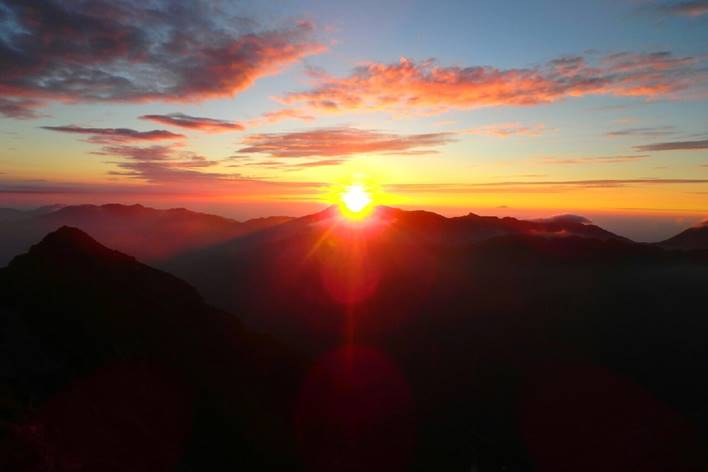 朝陽が昇り、槍が、山々が真っ赤に染まり、なんとも綺麗な光景だ。